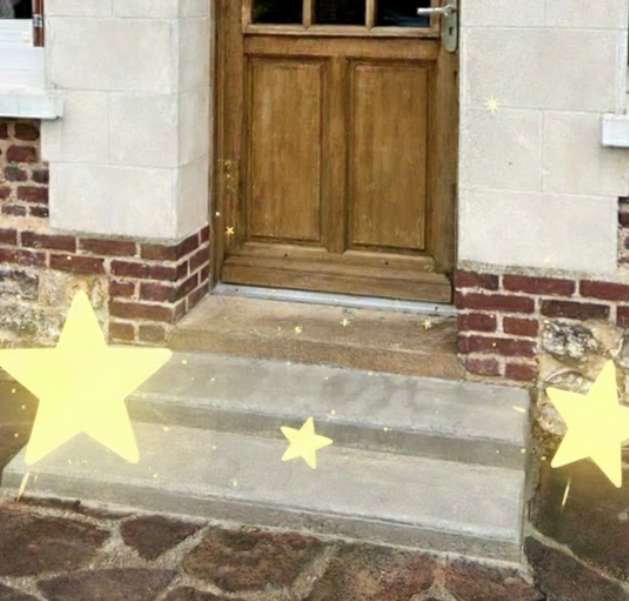 À Bréauté, Mme T. faisait face à une difficulté quotidienne souvent sous-estimée : des marches d’accès extérieures mal adaptées. Deux marches irrégulières, dont une particulièrement haute, rendaient chaque entrée et sortie du domicile pénible, fatigante et surtout risquée. Utilisant une canne, Mme T. craignait la chute à chaque passage.