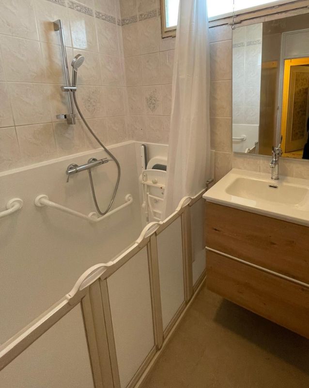 Désormais, Mme S. dispose d’une douche sécurisée, stable, accessible et pratique pour les gestes d’aide à la toilette.