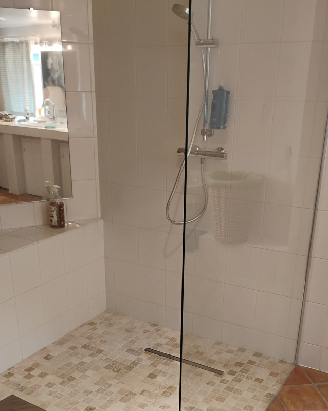 Remplacement d’une baignoire d’angle par une douche sécurisée à l’italienne à Montbrun (46)