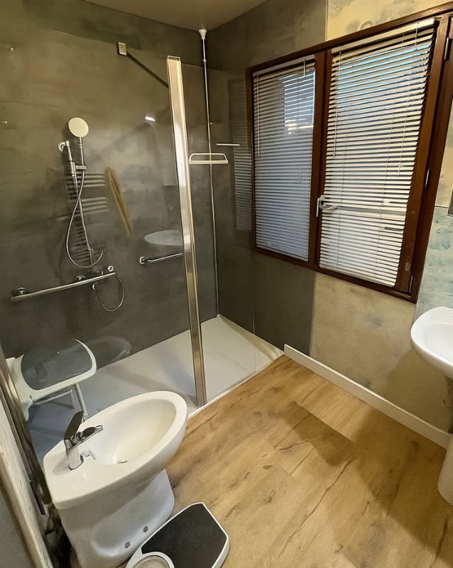 La première étape a été de remplacer la baignoire par une douche sécurisée dotée :