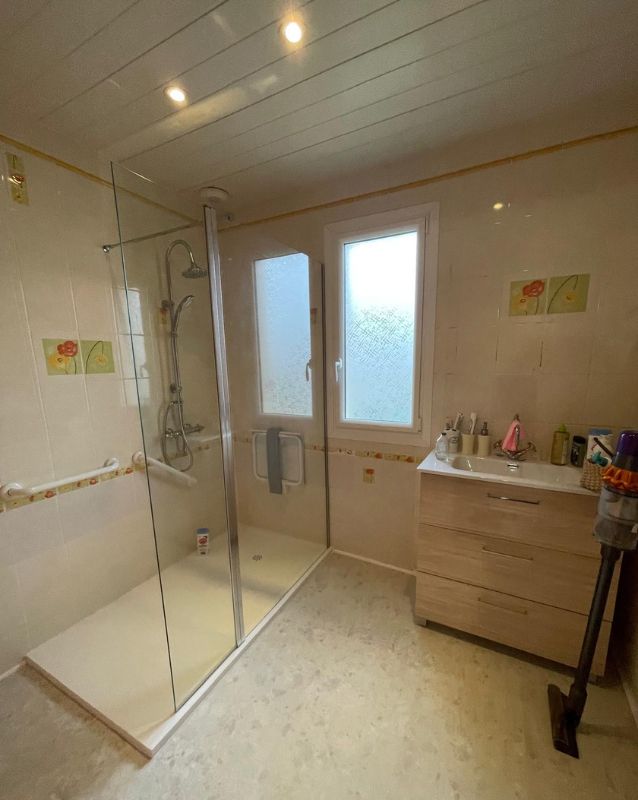 Remplacement de la baignoire par une douche sécurisée : plus accessible, limitant considérablement les risques de chute.